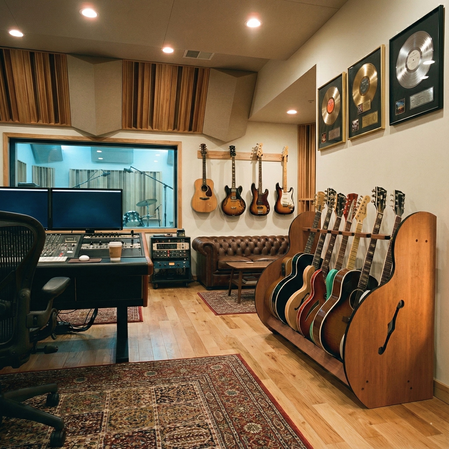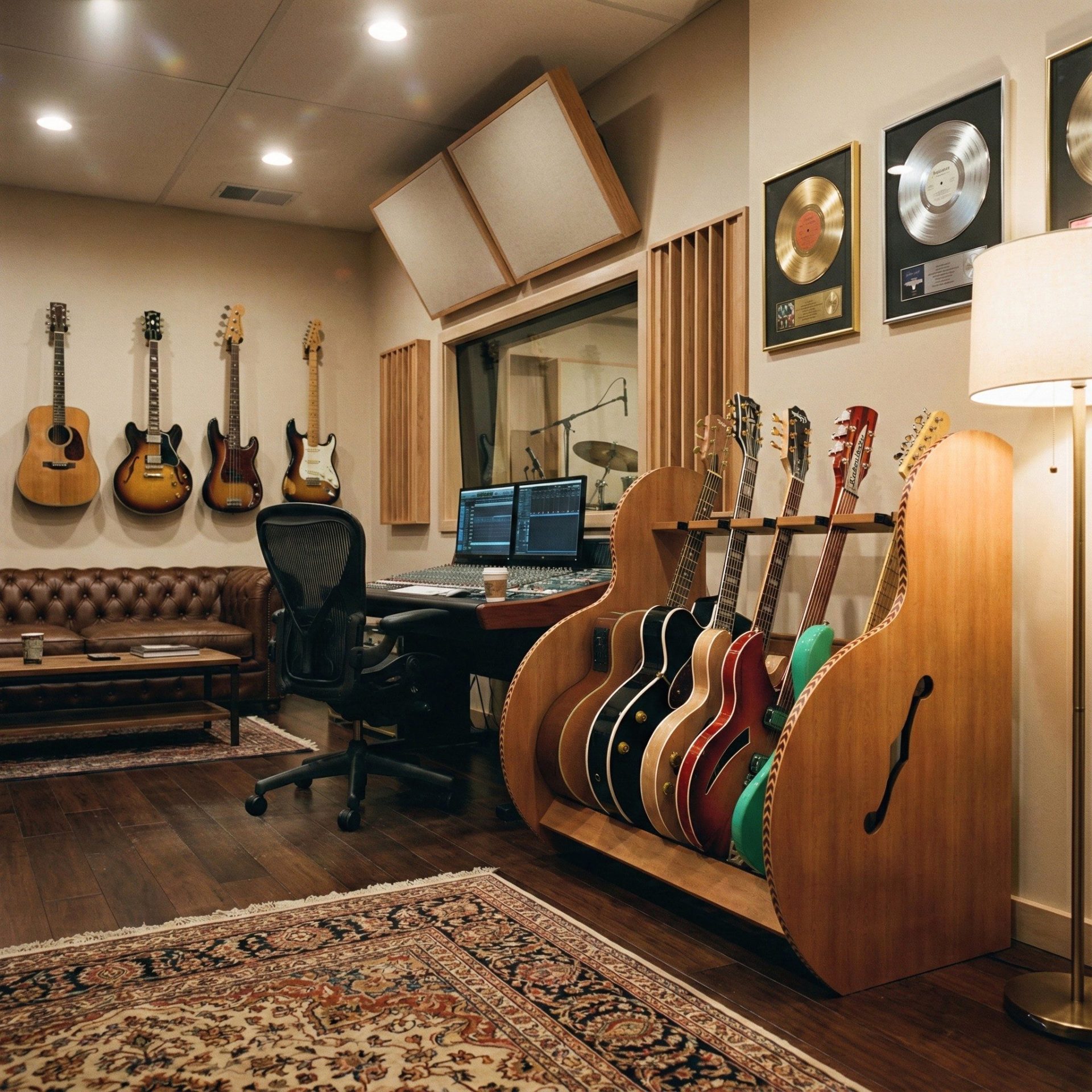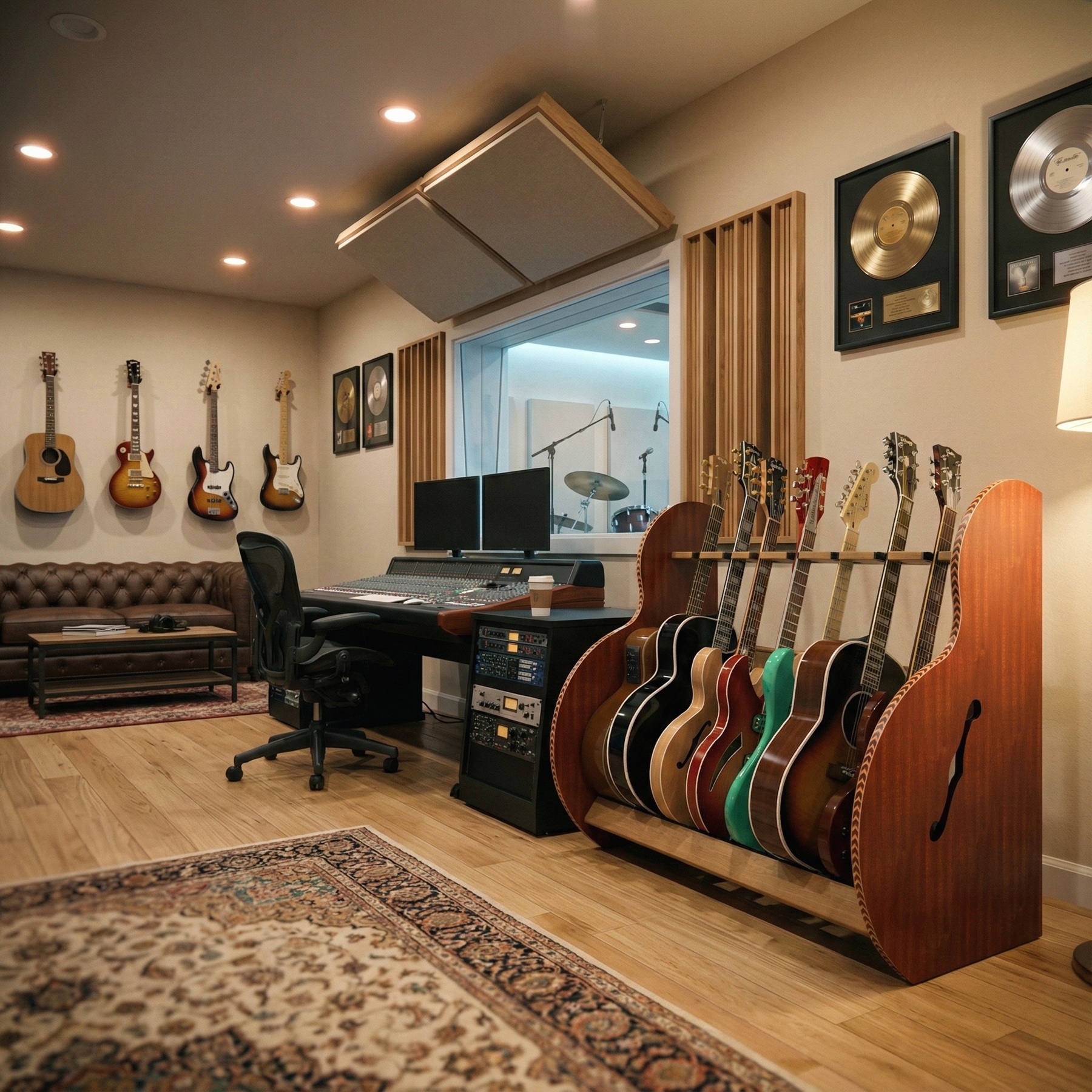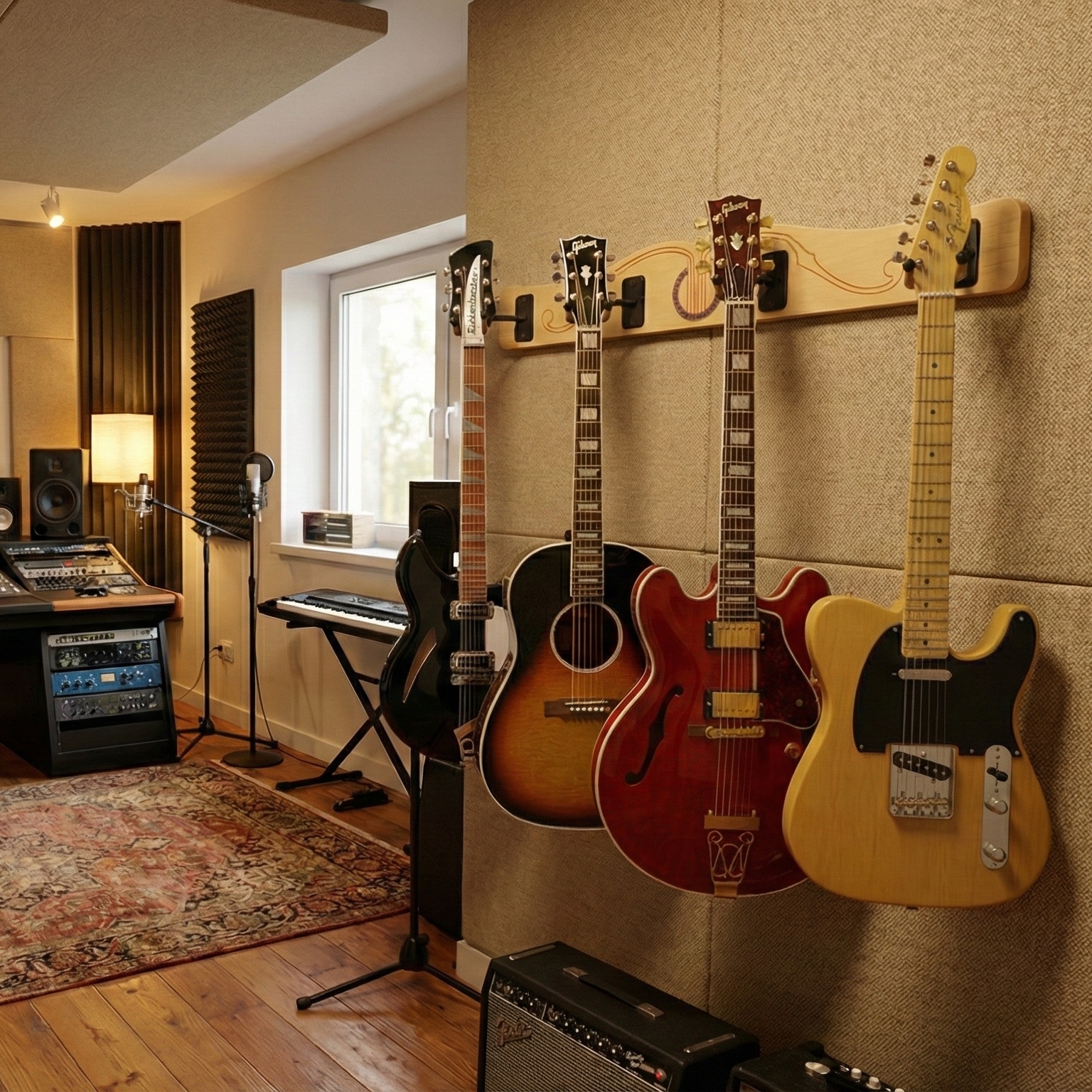 - Your guitars rest on soft cushions, ensuring their pristine condition